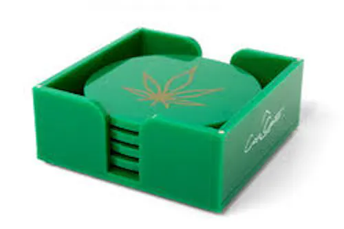 Take your drink party to the next level with our vibrant green coasters featuring a gold leaf motif. These coasters will ensure your cocktail party will not be forgotten! Coming in a stylish and smart green acrylic holder this makes a great gift idea for any occasion or a pick-me-up for yourself.