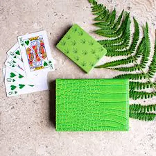 A unique way to bring style to your next games night, this playing card set features a luxurious crocodile inspired design. Adorned with our signature leaf design this set is a serious statement piece. Making a great textured accessory on your coffee table.