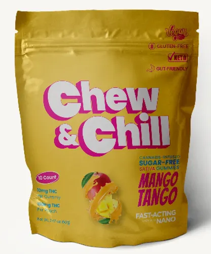 Chew & Chill Gummies Live Resin Sugar Free | 10:6:6 THC:CBD:CBC | Mango Tango [S] was found with another offer. Check them out!