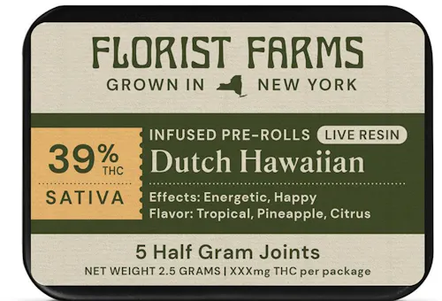 Florist Farms Pre Roll Pack Infused | 5pk 0.5g ea | D'Hawaiian [S] was found with another offer. Check them out!