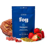 Foy Nighttime vegan chews are consciously formulated with authentic non-GMO fruit purées, delicately coated in powder derived from natural strawberries, and enriched with a potent adaptogen blend of USDA Certified Organic Reishi mushroom, USDA Certified Organic Valerian Root, and USDA Certified Organic Chamomile. These CO2-extracted, CBN-enriched chews are specially designed to promote optimal sleep quality and help reestablish a harmonious, restful sleep pattern.