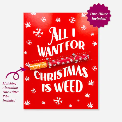 Kushkards | All I Want for Christmas is Weed Christmas Card with One-Hitter Pipe was found with another offer. Check them out!
